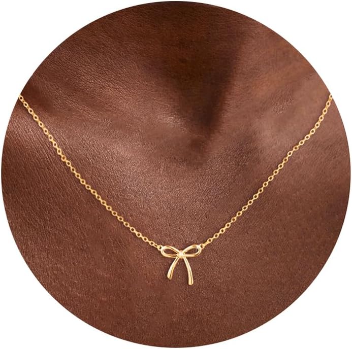 Bow Necklace for Woman Preppy Dainty Coquette Choker Pendant Bow Jewelry Trendy Cute Gold Necklace for Woman Aesthetic Gift