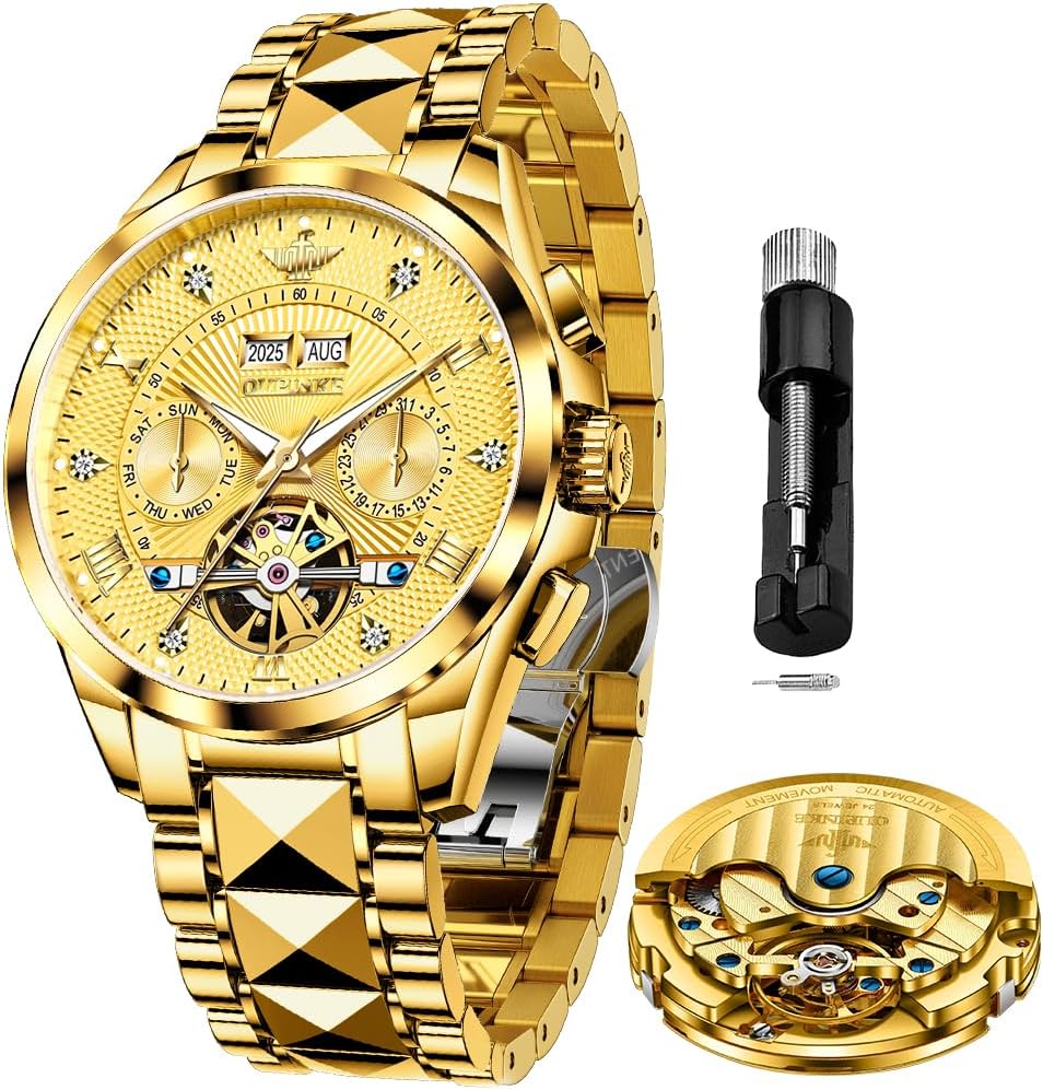 OLEVS Automatic Men Watches Mechanical Luxury Self Winding Wrist Watch Multi Calendar Stainless Steel Waterproof Wrist Watches for Men
