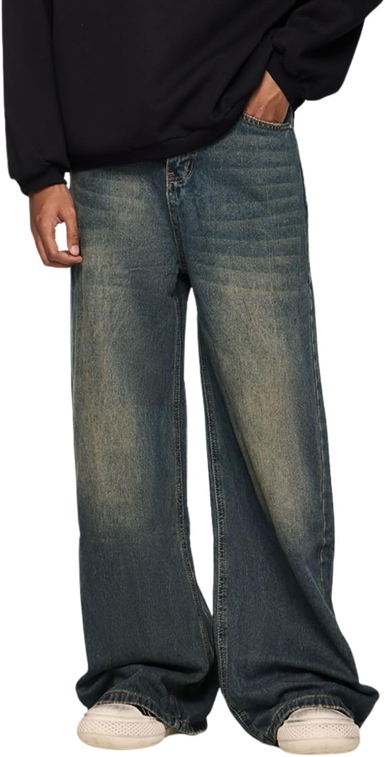 Men's Baggy Jeans Wide Leg Solid Color Y2k Denim Pants Streetwear Loose Fit Trousers