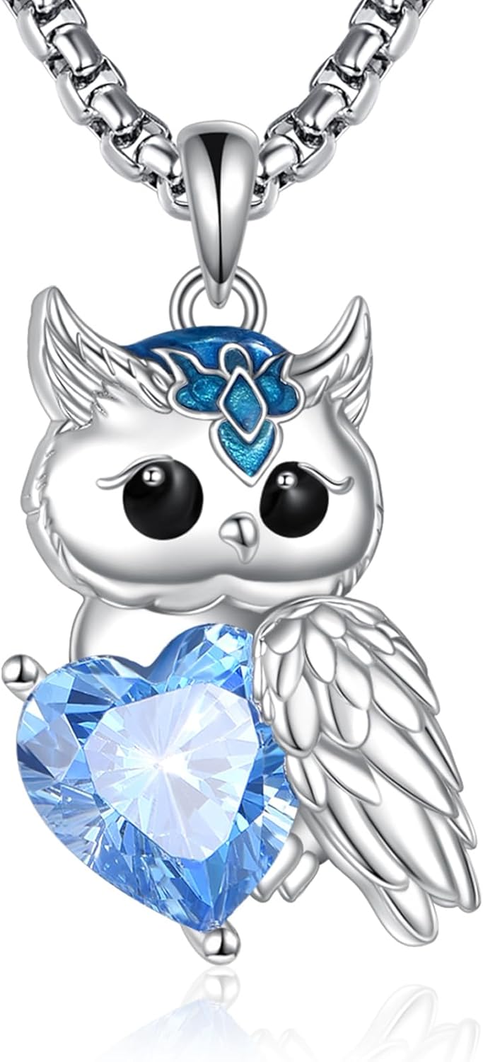 YAFEINI Owl Necklace Sterling Silver Owl Pendant Necklace Cute Animal Birthstone Jewelry Gifts for Women