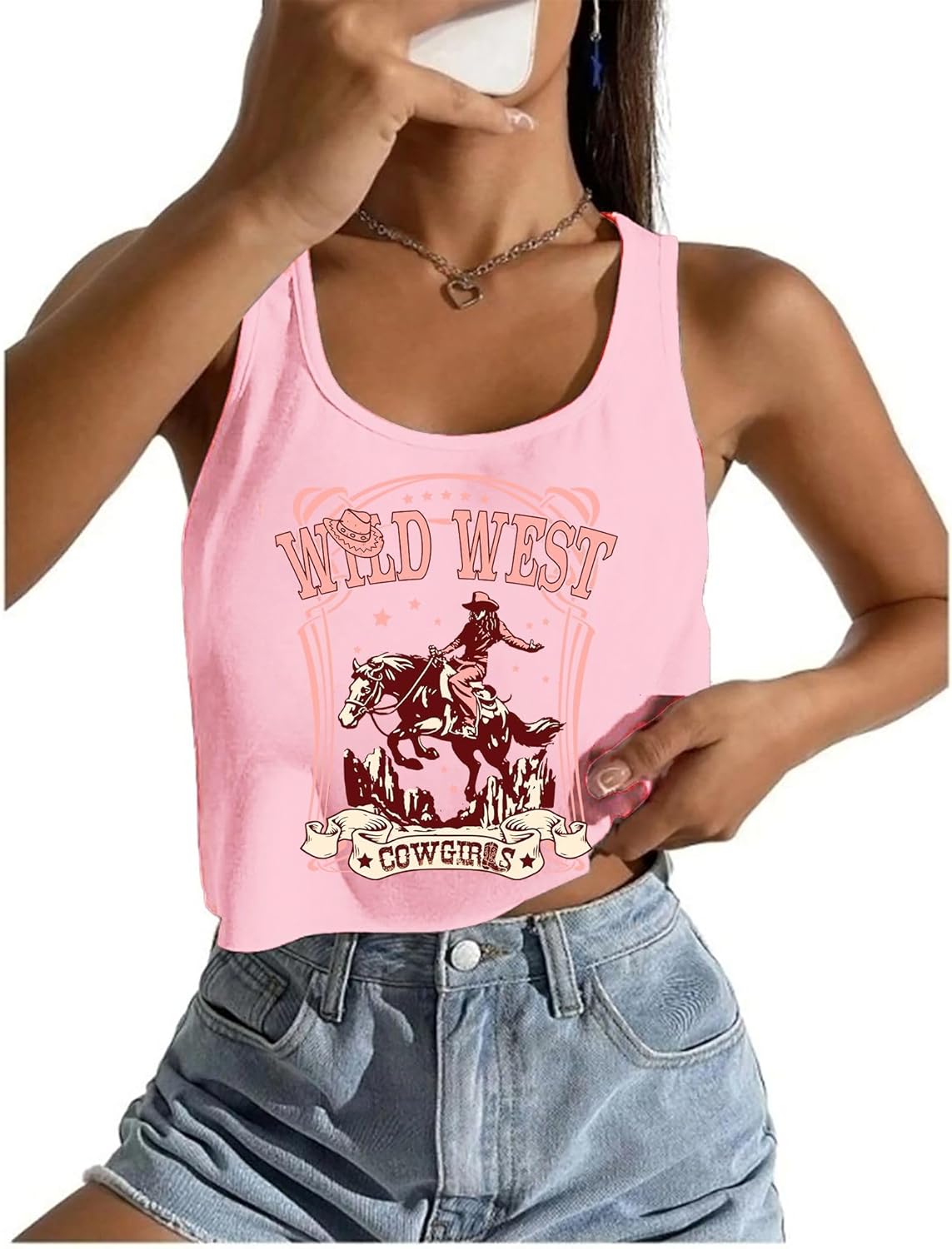 Western Crop Tops for Women Cowgirl Sleeveless Cropped Tank Tops Vintage Cowboy Country Concert Vest Shirts
