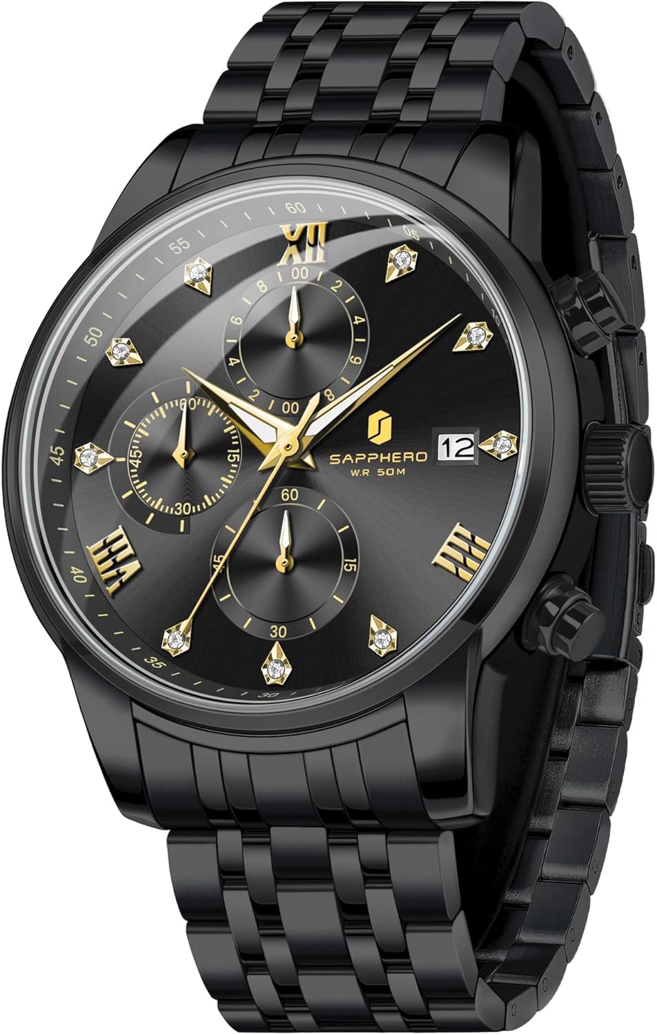 SAPPHERO Watches for Men Easy-to-Read Sliver Stainless Steel Watches Men Luxury Mens Watch Waterproof Chronograph Birthday/Christmas/Fathers Day Gift
