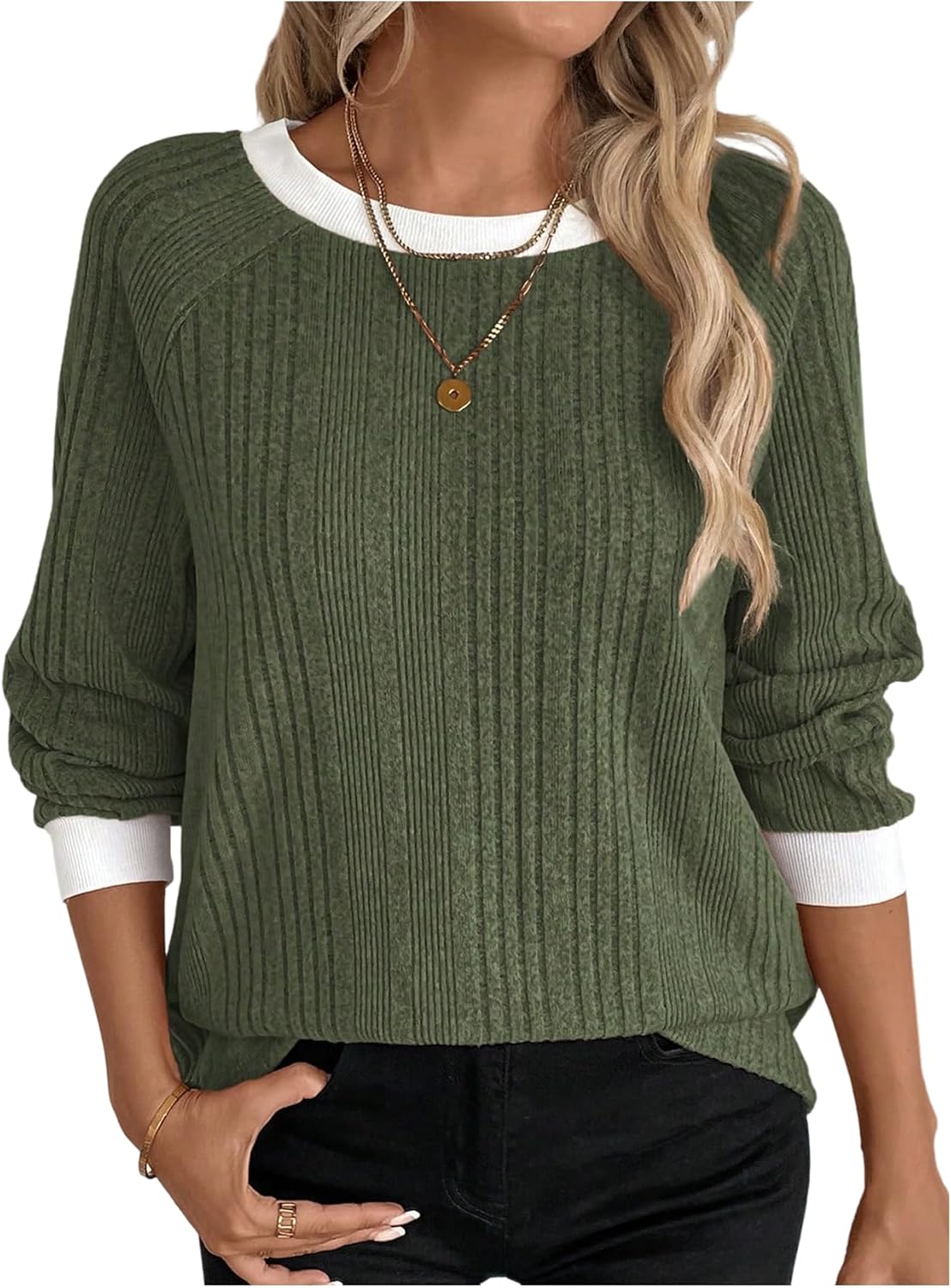 SOLY HUX Women's Long Sleeve Sweatshirt Color Block Crew Neck Pullover Tops Trendy Casual Fall Clothes