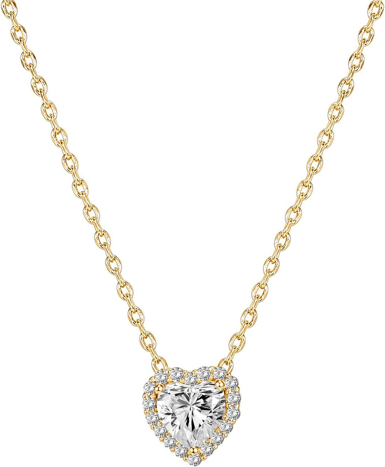 PAVOI 14K Gold Plated Post Faux Diamond Round Solitaire Pendant Halo Necklace | Gold Necklace for Women | Slider Adjustable