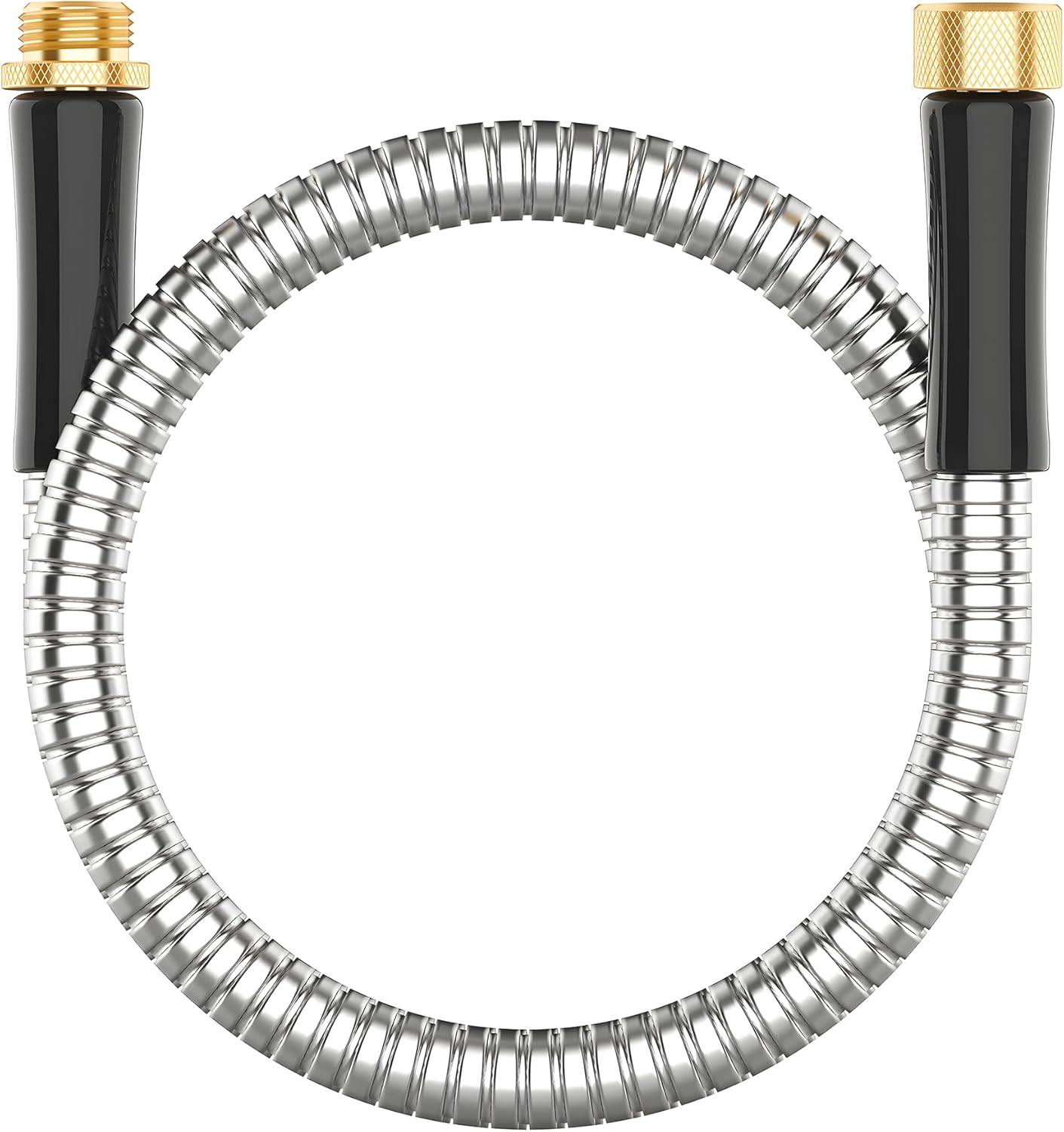 - 【Premium Metal Hoses】The non-expandable garden hoses are made from 304 stainless steel. This ensures they are durable and resist leaks, punctures, and harsh weather. Their sturdy build protects them from being dragged on rough ground and from dog bites in your backyard.