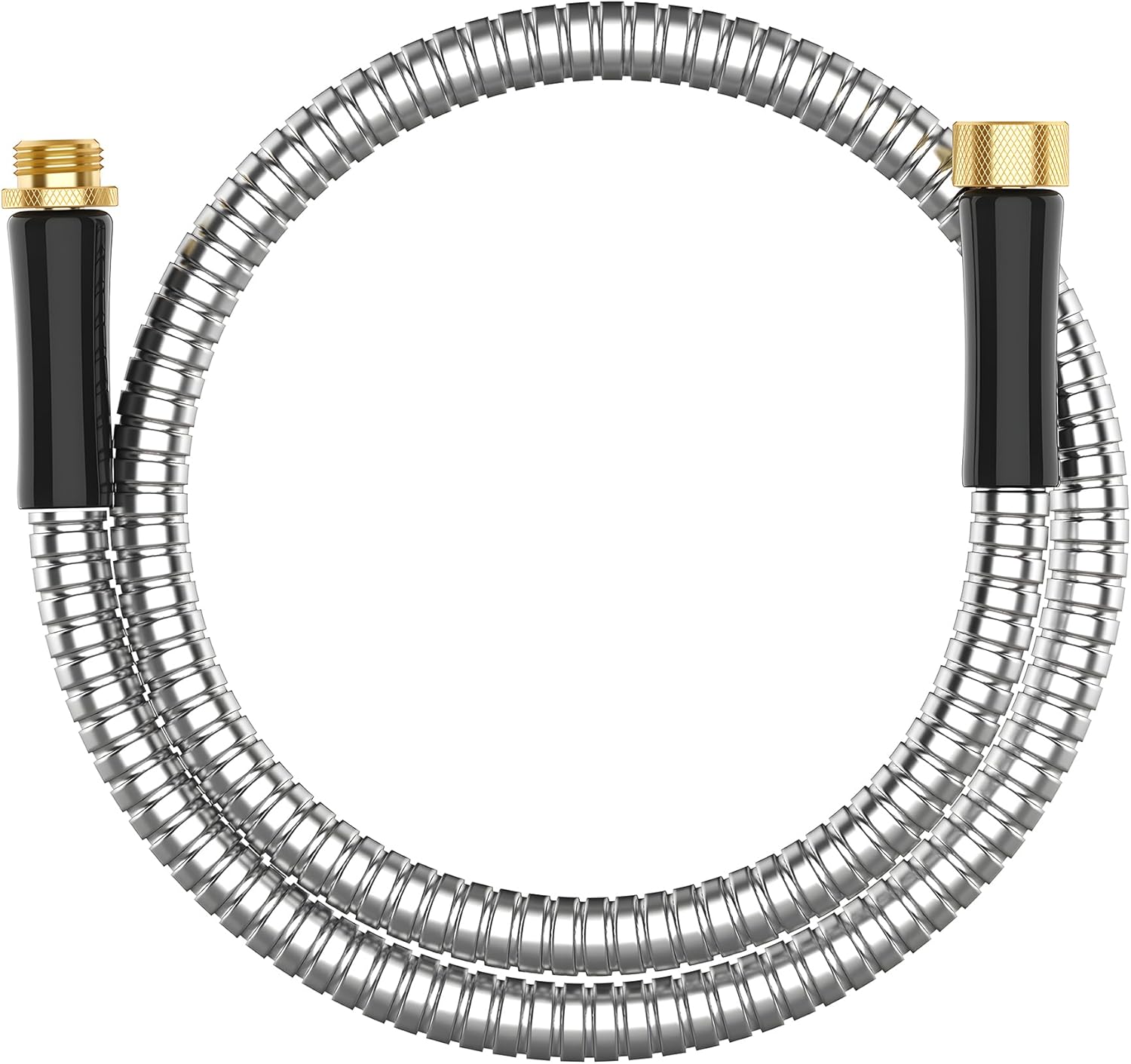 - 【Premium Metal Hoses】The non-expandable garden hoses are made from 304 stainless steel. This ensures they are durable and resist leaks, punctures, and harsh weather. Their sturdy build protects them from being dragged on rough ground and from dog bites in your backyard.