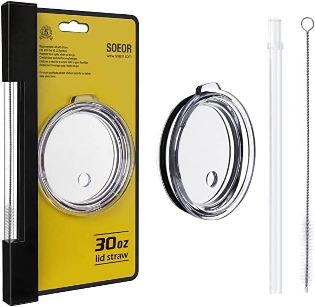 Spill Proof Lid With Straw For 30oz 42oz YETI Rambler, Tumbler, Ozark Trail cup and other brands Vacuum insulation stainless steel 30 oz Tumblers (30oz)