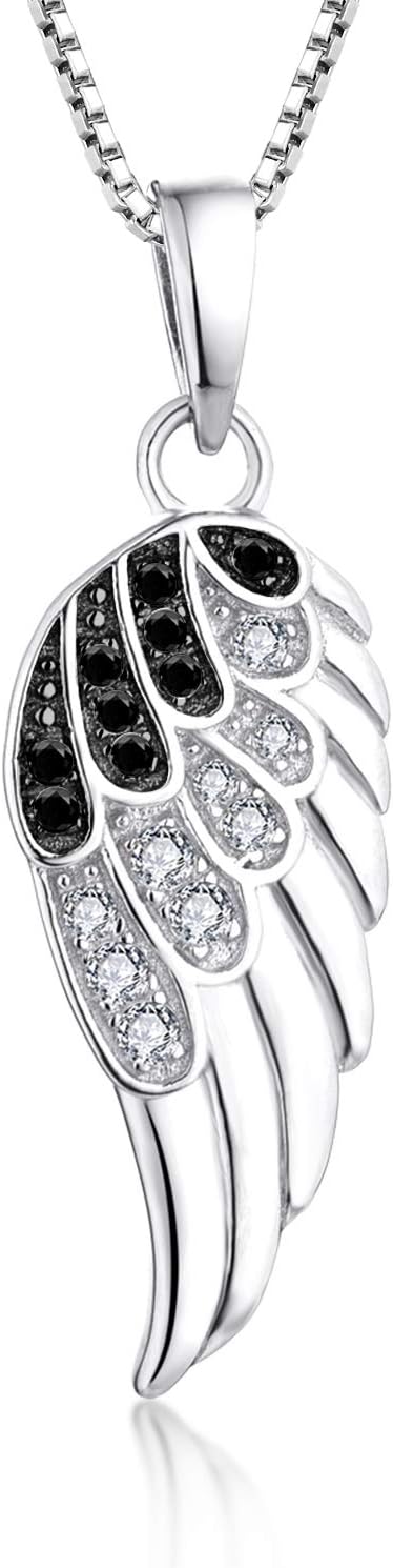 STARCHENIE 925 Sterling Silver Angel Wing Pendant Necklace for Women Cubic Zirconia 18" Chain