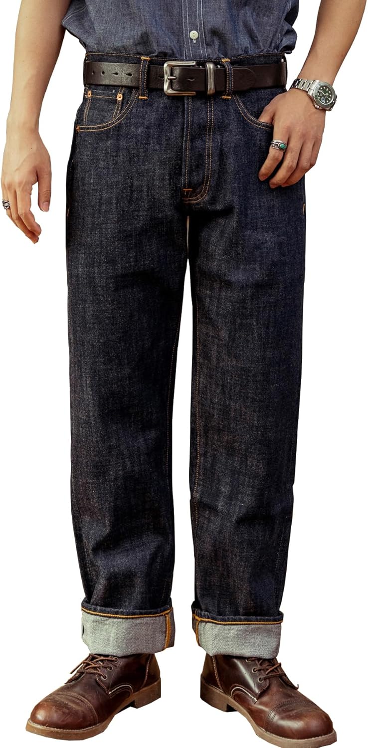 Red Tornado Vintage Men's Jeans Relaxed Fit Straight Leg 14oz Selvedge Jean Denim Pants Loose Fit Hight Rise Men Jeans