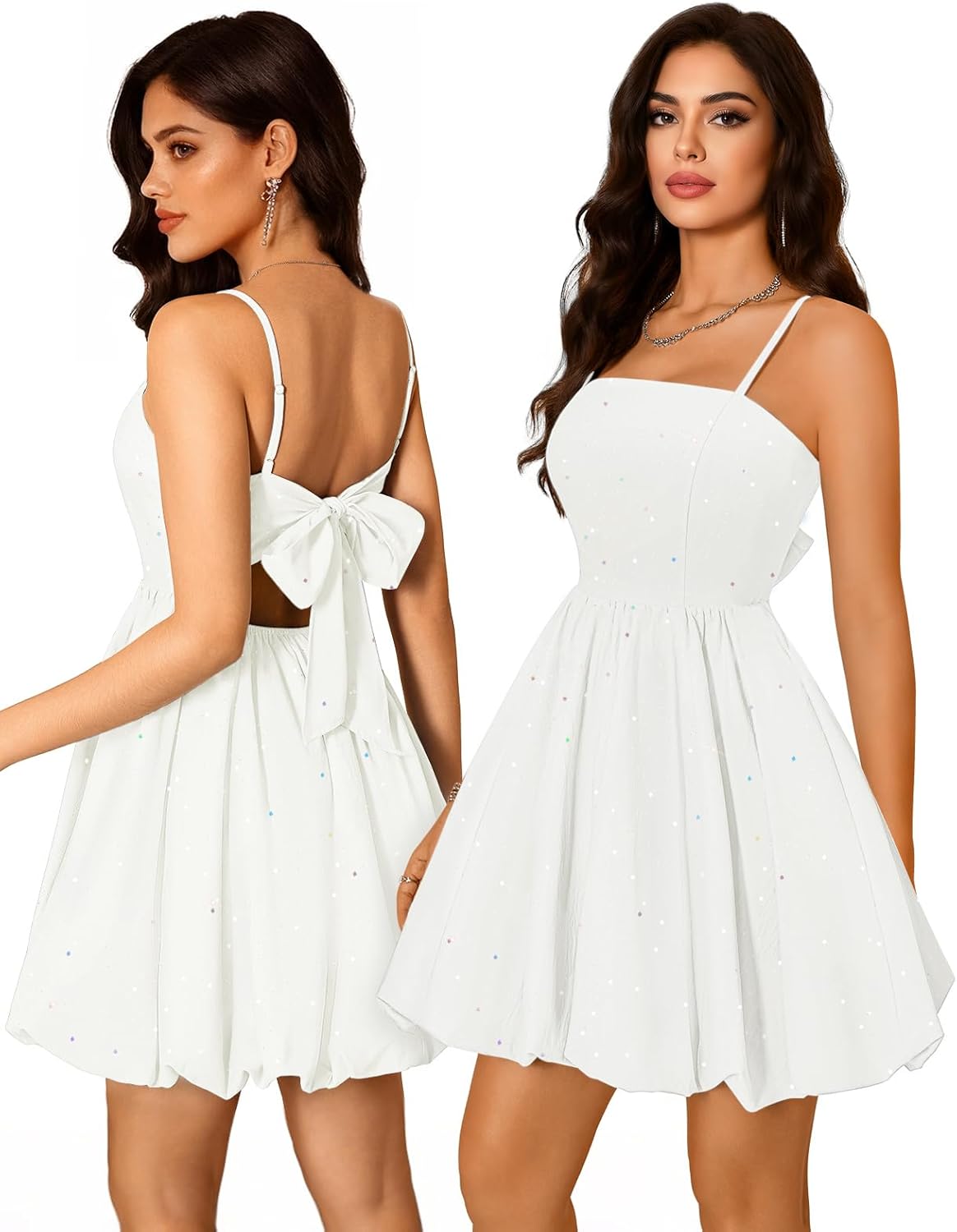 DRESSTELLS Sparkly Bubble Dress, Short Homecoming Graduation Dresses, Adjustable Straps, Bow Tie, Fully Lined, S-XL