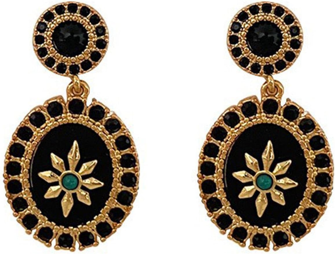 ZIRPEARA Exquisite Women's Gold Plated Octagram Drop Earrings with Black Cubic Zirconias and Green Turquoise Stones - Vintage Style Statement Jewelry