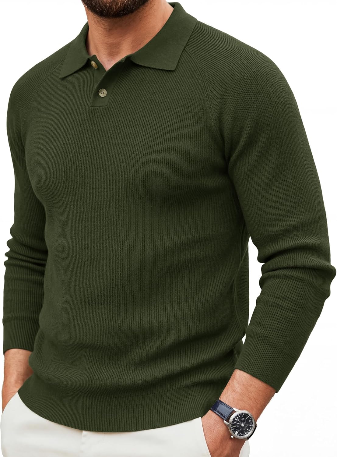 MAGNIVIT Mens Long Sleeve Knit Polo Shirts Casual Raglan Sleeve Sweater 2-Button Down Anti-Pilling Golf Shirts