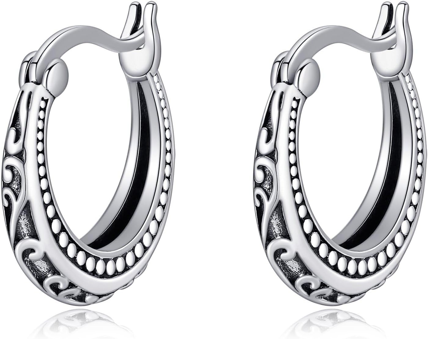Filigree Hoop Earrings 925 Sterling Silver Lightweight Click Top Hoop Earrings Openwork Mesh Earring Vintage Jewelry Gifts for Women