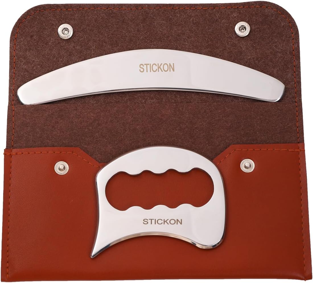 STICKON 2 in 1 Gua Sha Muscle Scraper Tool Set,Scraping Massage Tool, Stainless Steel Guasha IASTM Tool for Physical Therapy & Massage Scraper Tool, Relieve Muscle Pain and Tension(STICKON-51)