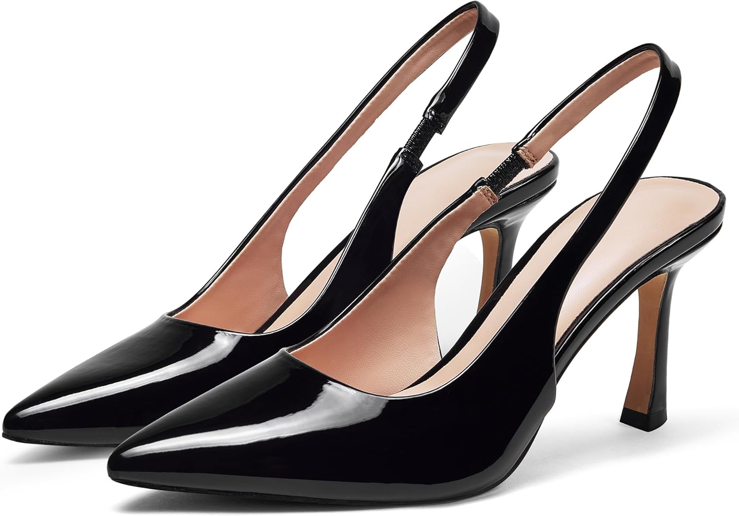 GENSHUO Women's Slingback Heels Closed Pointed Toe Dress Pumps Shoes Slip On 4 Inch High Stiletto Comfortable Sexy Wedding Work Casual Prom Party