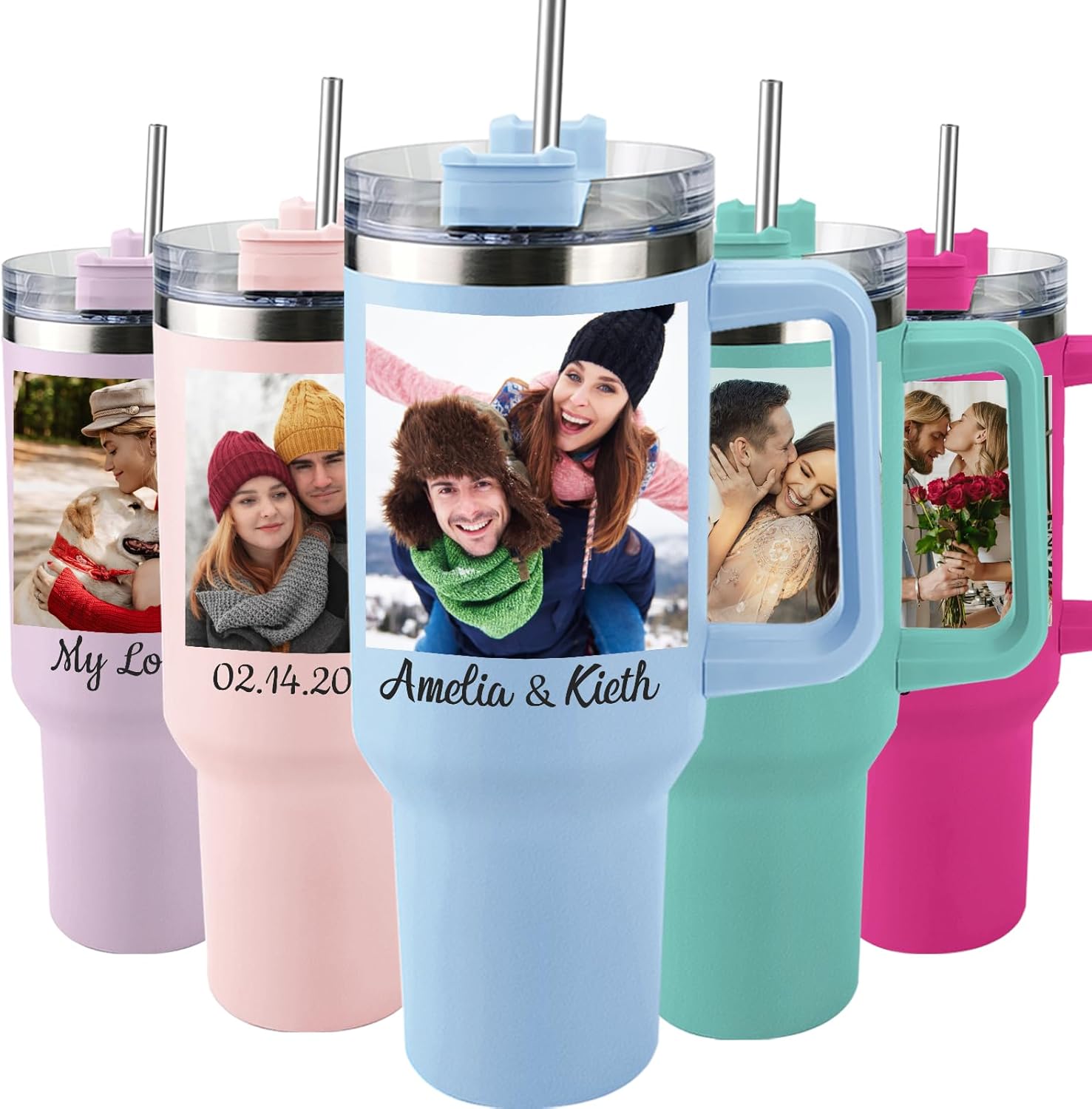 Ships Next Day Custom 40oz Tumbler with Picture&Name, Personalized Tumbler with Handle, Valentines Day Gifts for Him/Her, Girlfriend Boyfriend Gift for Birthday