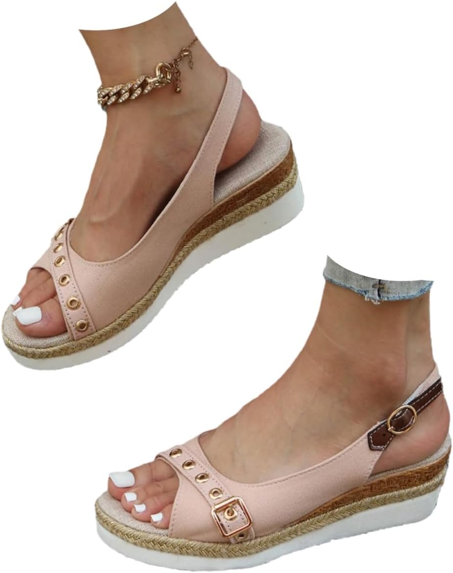 Women's Orthopedic Platform Wedge Sandals with Ankle Strap Summer Dressy 2026 Boho Espadrille Sandals for Beach Travel