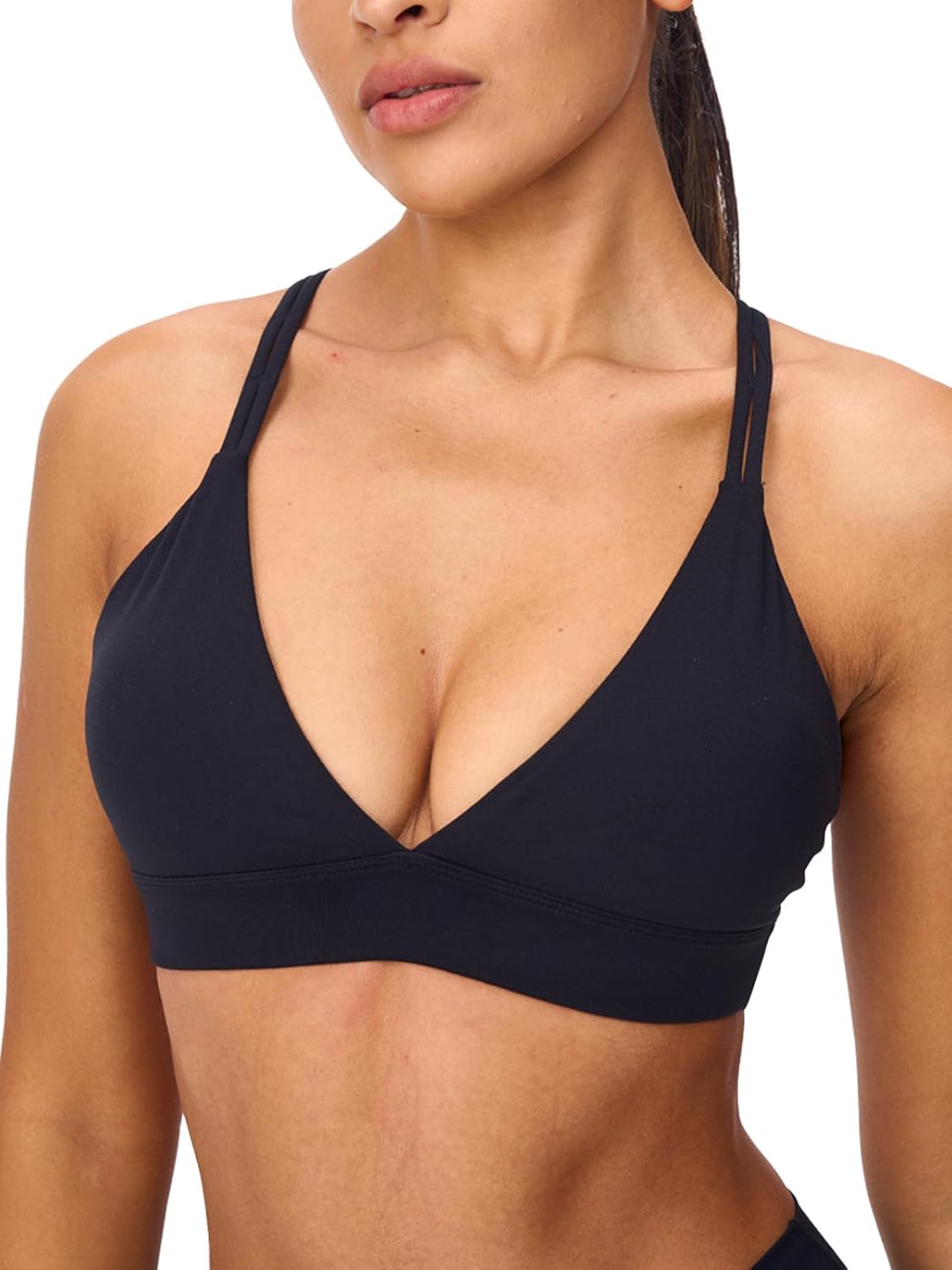 Women's Deep V-Neck Sports Bras Push Up Low Cut Workout Bras Criss Cross Back Padded Yoga Lounge Bra