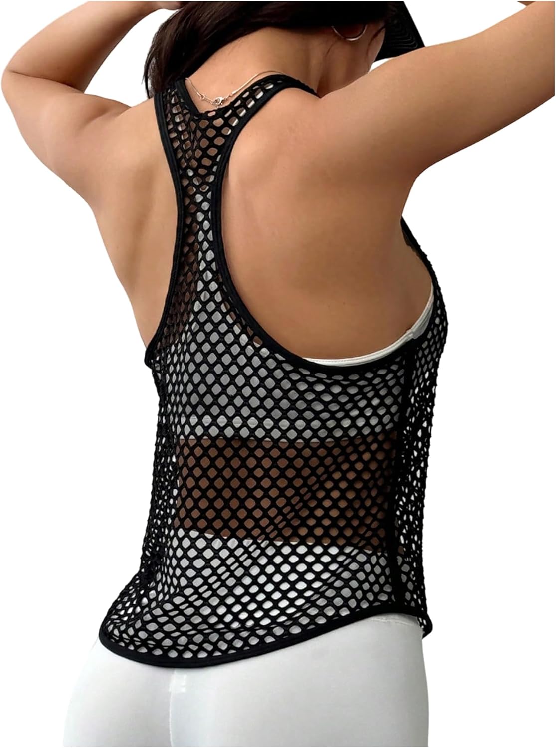 SweatyRocks Women's Racerback Workout Tank Tops Fishnet Sleeveless Athletic Yoga Shirts
