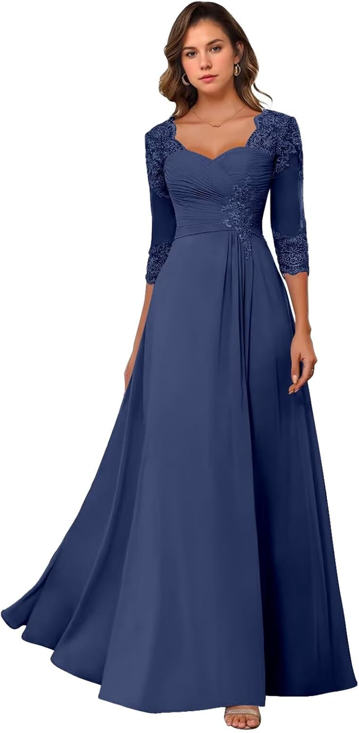 A Line Long Mother of The Bride Dresses Lace Applique Mother of The Groom Dresses for Women Chiffon Wedding Guest Gowns