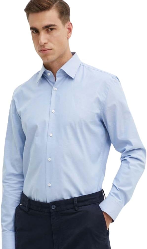 Hugo Boss Men's Hank Slim Fit Easy Iron Dress Shirt (US, Neck, 17, Light Blue)