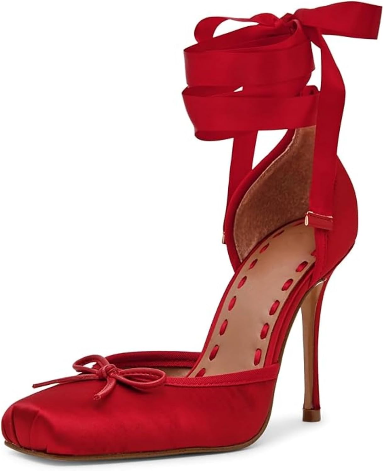Women's Ballet Heels, Satin Ballerina High Heels with Ribbon Lace-Up, Square Toe Mary Jane Stiletto Heels for Party, Wedding & Formal Dress