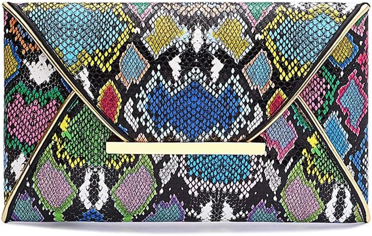 Newfancy Women Snakeskin Envelope Clutch Bag Crossbody Purses With Chains Evening Party Prom Shoulder Messenger Handbags
