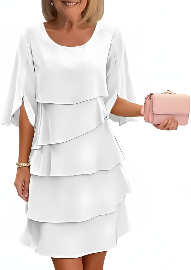 Womens Casual Tiered Layed Slit Half Sleeve Crewneck Dress Summer Loose Tunic Aline Wedding Cocktail Midi Dresses 2026