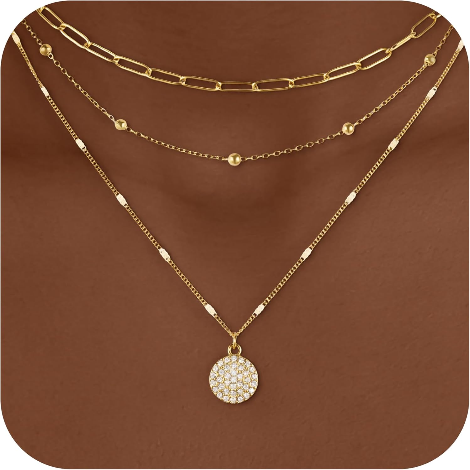 Layered Gold Necklace Stack for Women, 18K Gold Plated Stainless Steel Jewelry, 3 Pcs Dainty Pendant Paperclip Chain Necklace Stack Set, Non-Tarnish Valentine's Day Gift for Her