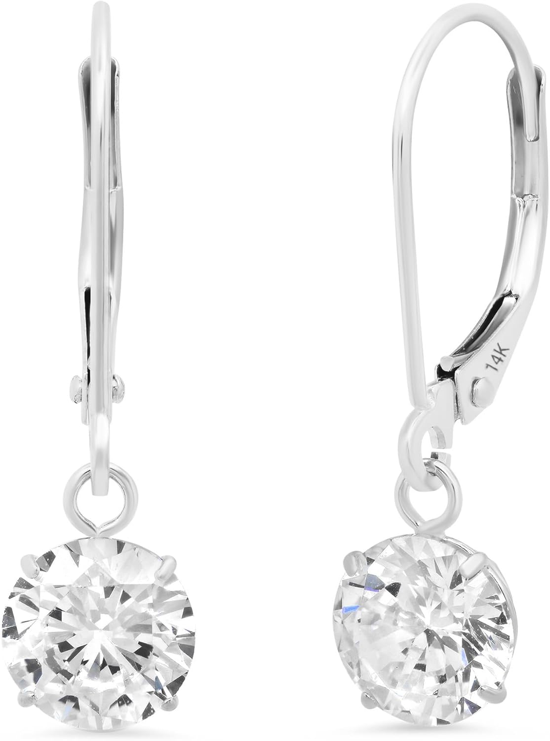 14k Gold Leverback Cubic Zirconia Dangle Earrings | Solid Real White or Yellow Gold Dangle Earrings for Women | 1-8 CT.TW 14k Gold Earrings for Women | CZ Cubic Zirconia Drop Earrings by MAX + STONE