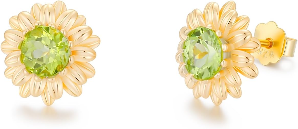 Sunflower Stud Earrings 925 Sterling Silver Natural Gemstone with Sunflower Earrings for Women