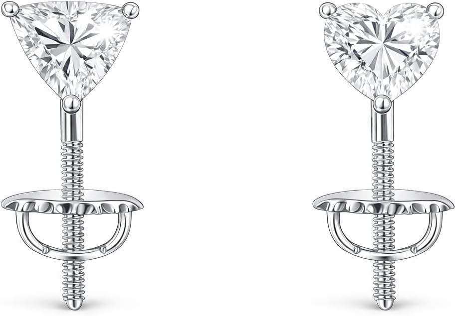 Valentine’s Day Luxury Moissanite Stud Earrings Gift Set | 2.5CT Trillion & 2CT Heart Cut Earrings | 14K White Gold Plated 925 Sterling Silver | Premium Jewelry Gift for Her