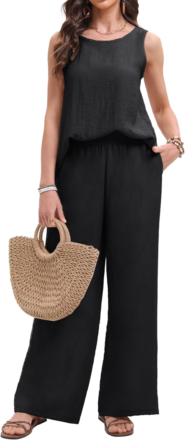 Women's 2 Piece Casual Outfits Sleeveless Top and Wide Leg Palazzo Pants Set