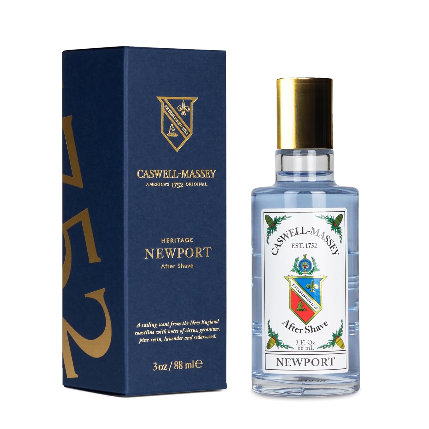 Caswell-Massey Newport Gold Cap After Shave, Soothing Aftershave with Sandalwood, Citrus & Cedar, 3 Fl Oz