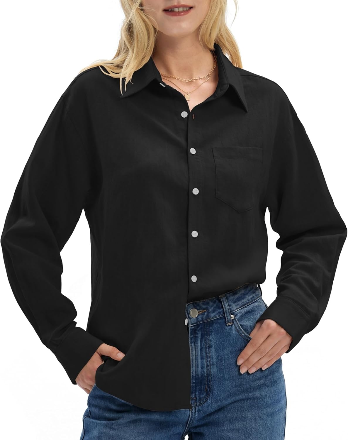 Women's Linen Shirts Casual Button Down Linen Tops for Women Long Sleeve Loose Fit for Summer Beach Vacation