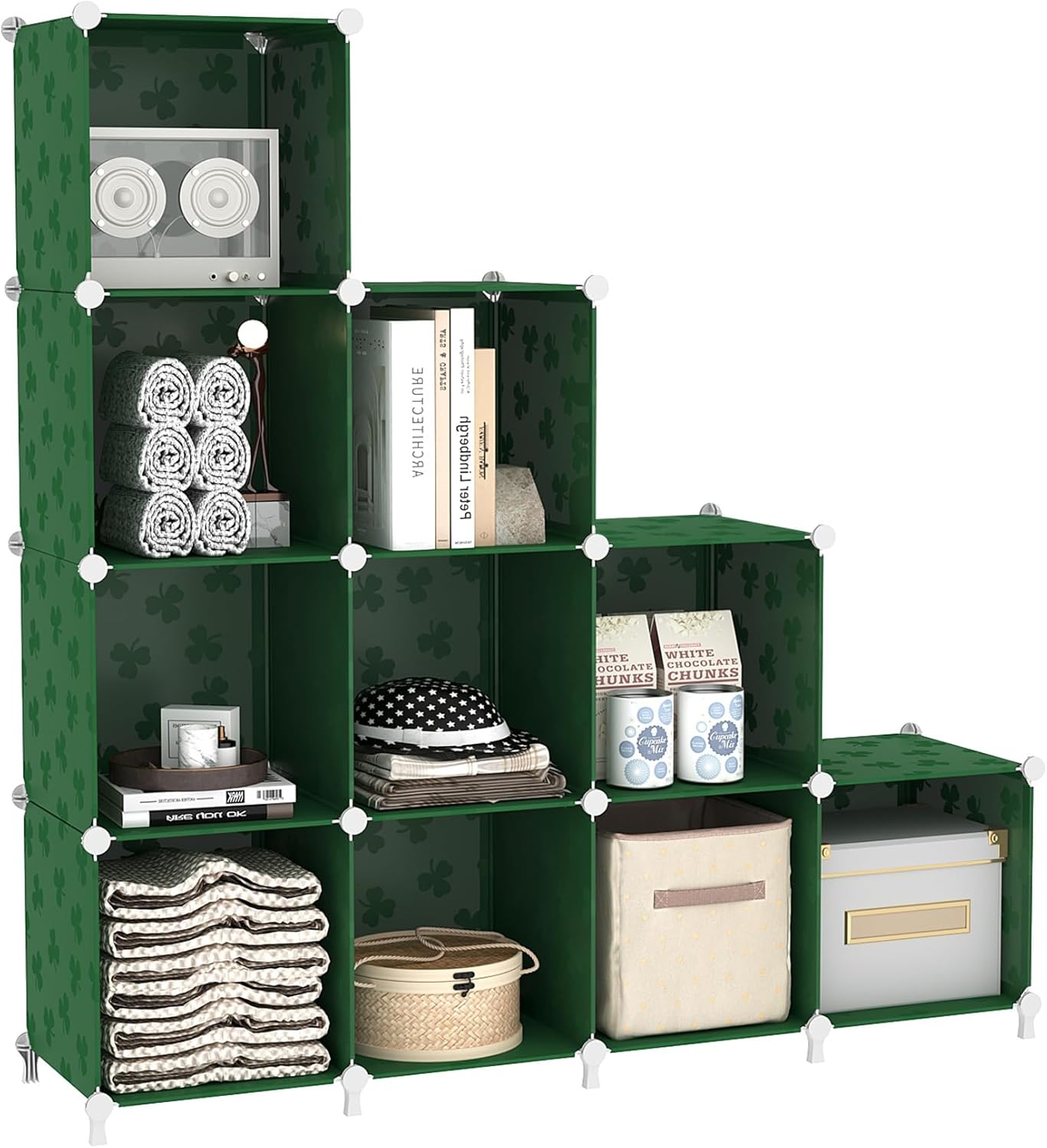 UNKU Cube Storage Organizer, 10 Cube Closet Organizer Storage Shelves, DIY Stackable Bookcase, Clothes Organizer Shelf for Closet, Bedroom, Living Room, Cabinet, Home, Office, Green