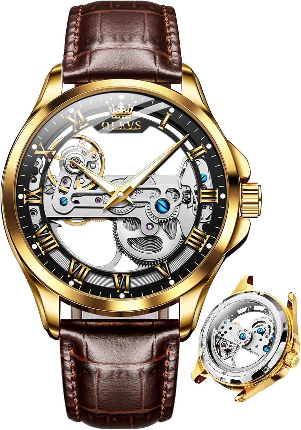 OLEVS Skeleton Watches for Men Automatic Self Winding Mechanical Luxury Dress Leather Waterproof Luminous Men Wrist Watch