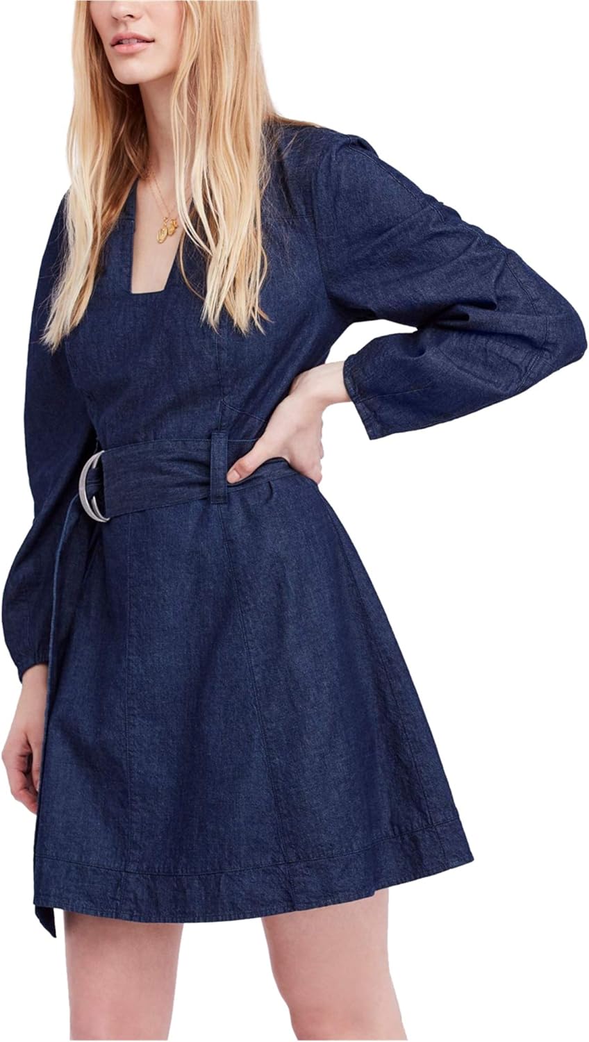 Free People Womens Karmen Denim Above Knee Casual Dress Blue XS