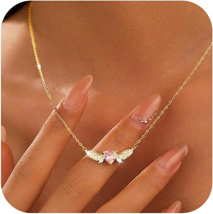 925 Sterling Silver Angel Wings Heart Necklaces for Women Cute Dainty Pink CZ Heart Pendant Necklace Couple Necklaces Mother Daughter Friendship Necklace Adjustable Choker Necklace Valentines Jewelry