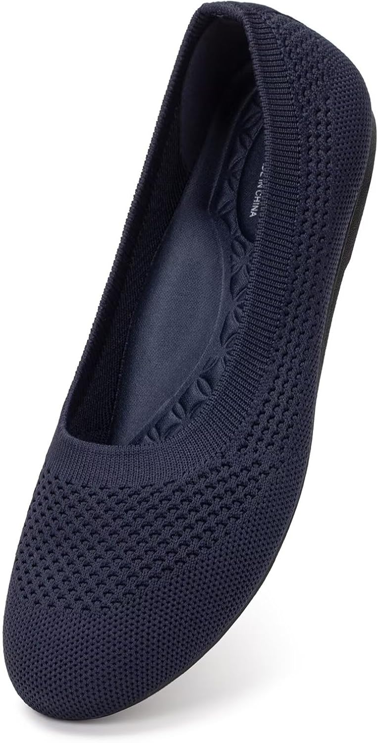Frank Mully Women's Wide Width Flats Ballet Flats Round Toe Knit Flat Shoes with Arch Support Wide Toe Box