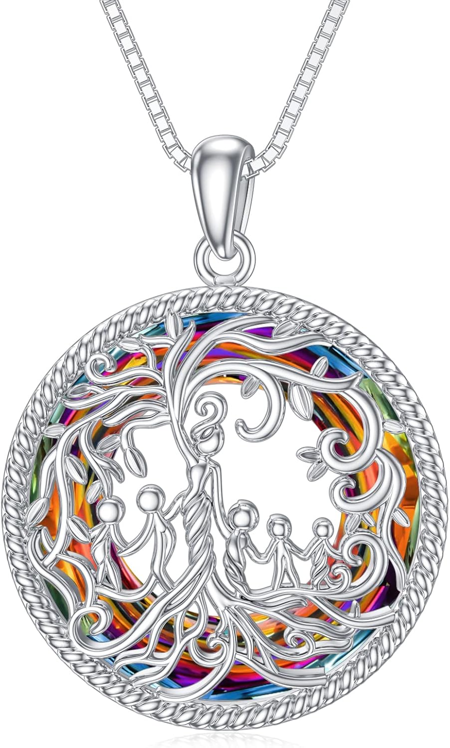 TOUPOP Gifts for Mom Jewelry, Mother and Daughter/Son Necklace 925 Sterling Silver Tree of Life with Austrian Crystal Jewelry for Women, Mothers Day Birthday Gifts