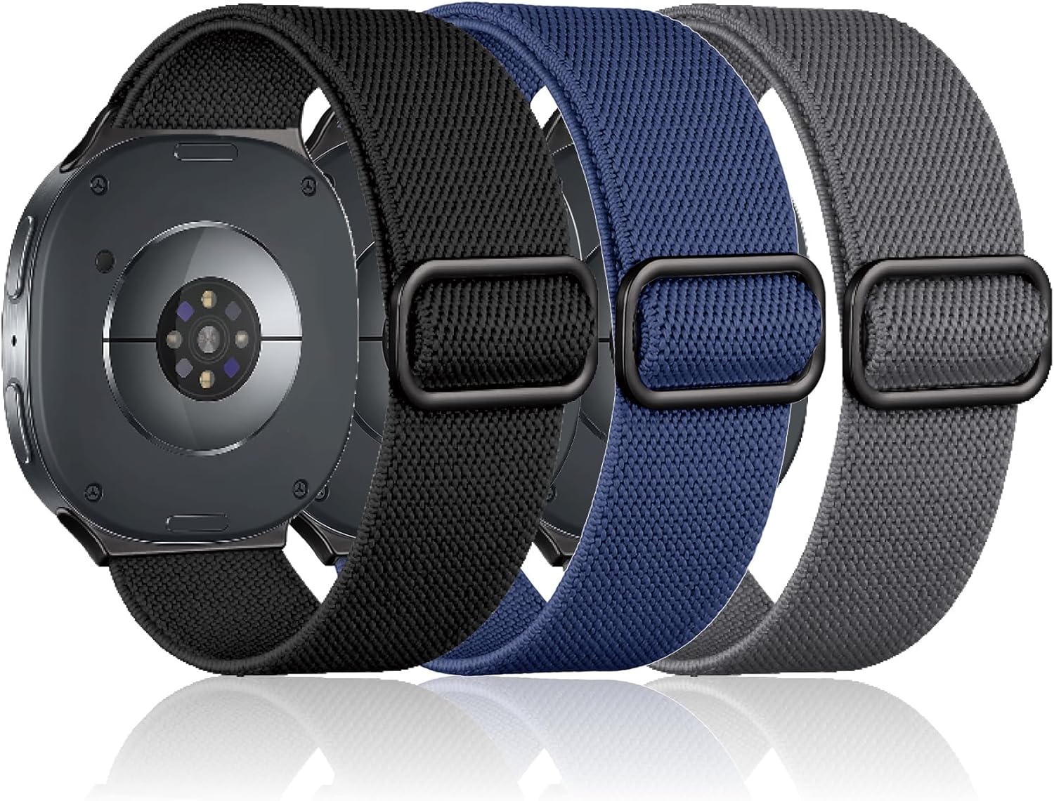 3 Pack Stretchy Nylon Bands Compatible for Samsung Galaxy Watch 8 Band 40mm 44mm/ 8 Classic 46mm, Solo Loop Sport Straps Soft Breathable Wristband for Galaxy Watch 8 Classic Band for Men Women