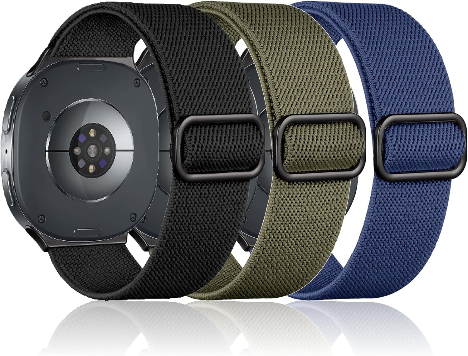 3 Pack Stretchy Nylon Bands Compatible for Samsung Galaxy Watch 8 Band 40mm 44mm/ 8 Classic 46mm, Solo Loop Sport Straps Soft Breathable Wristband for Galaxy Watch 8 Classic Band for Men Women