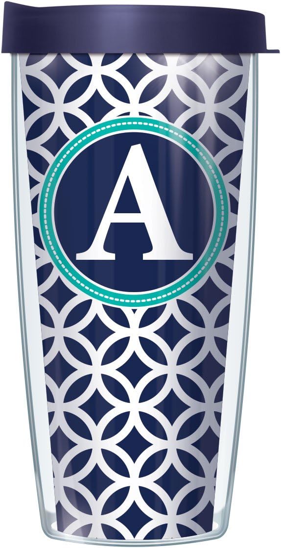 A Initial on Navy Roundabout Traveler 16 Oz Tumbler Cup with Lid
