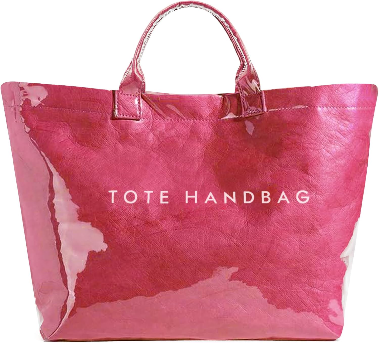 ALUSBELL Large PVC Tote Bag for Women Letters Print Tote Handbag Kraft Paper Travel Shoulder Bag Clear Carry All Hobo Handbag