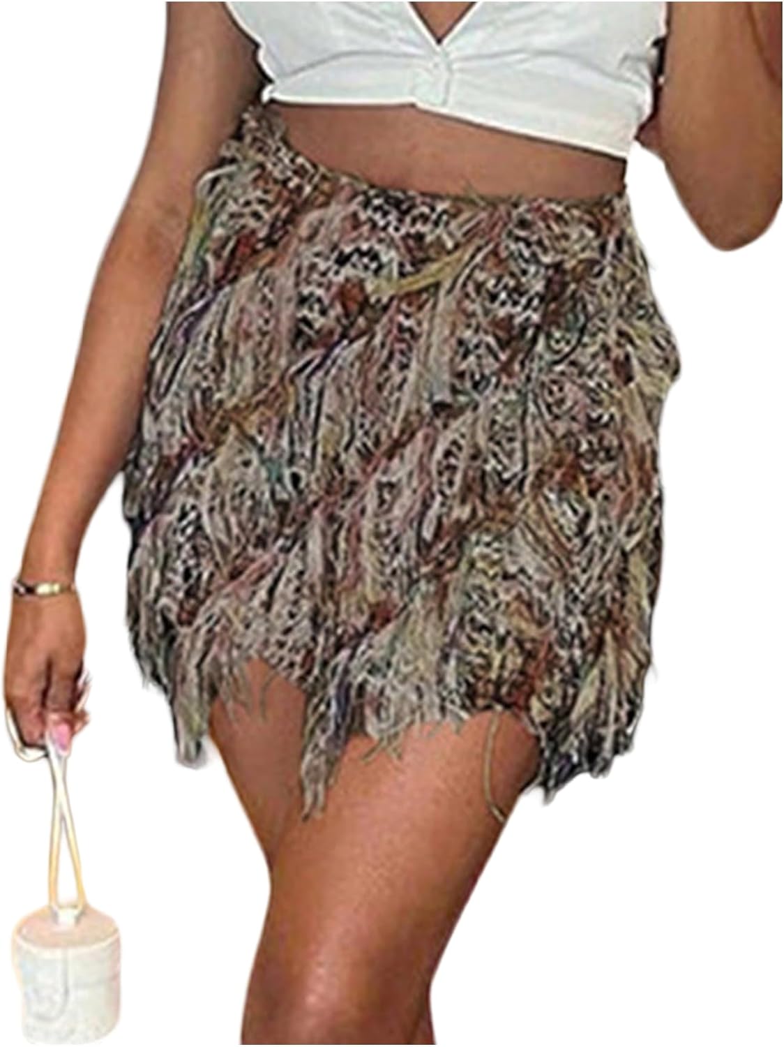 MakeMeChic Women's Boho Mini Skirt Fringe Fuzzy Print Bodycon Short Cowgirl Skirts