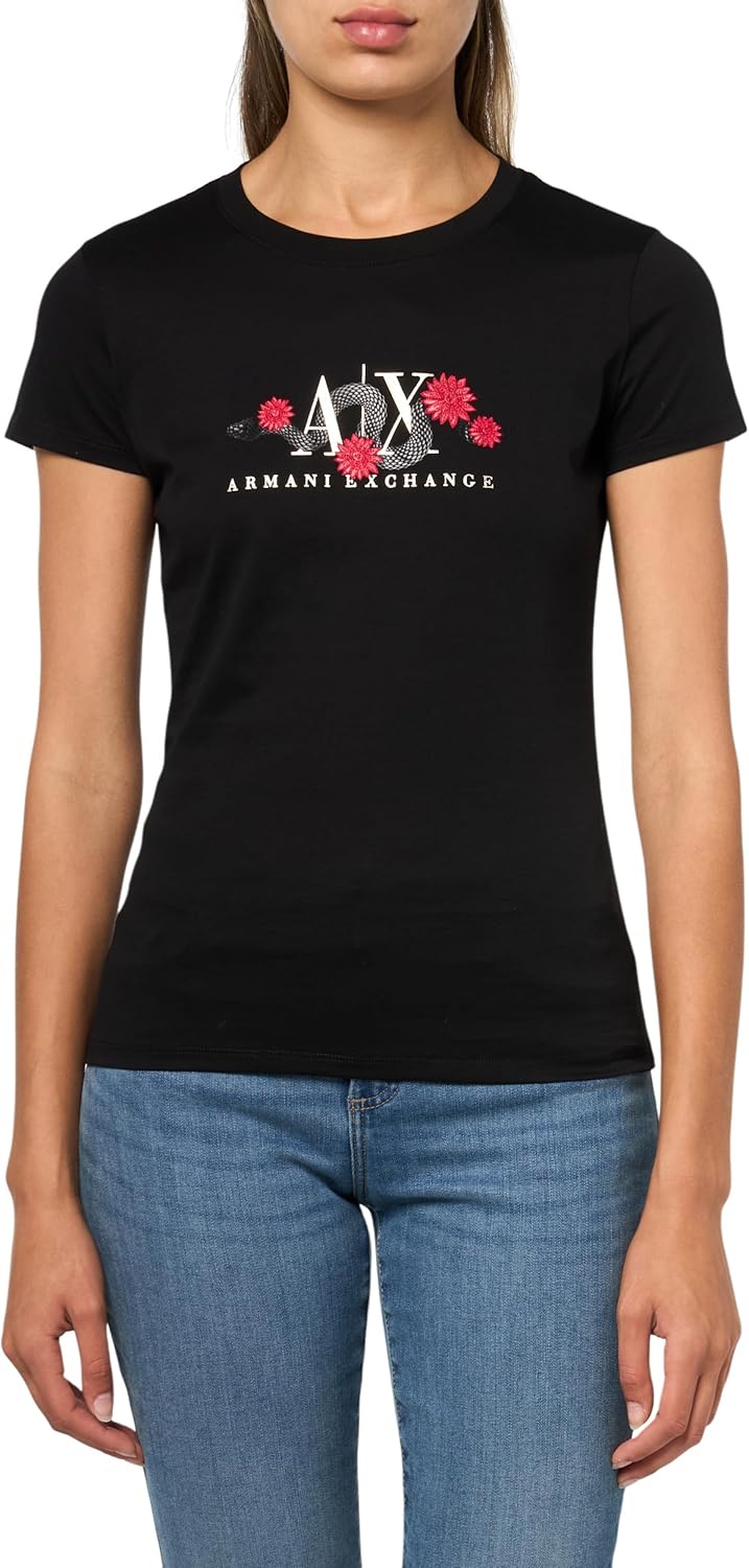 Armani Exchange Womens Snake Graphic Slim Fit Short Sleeve Tee