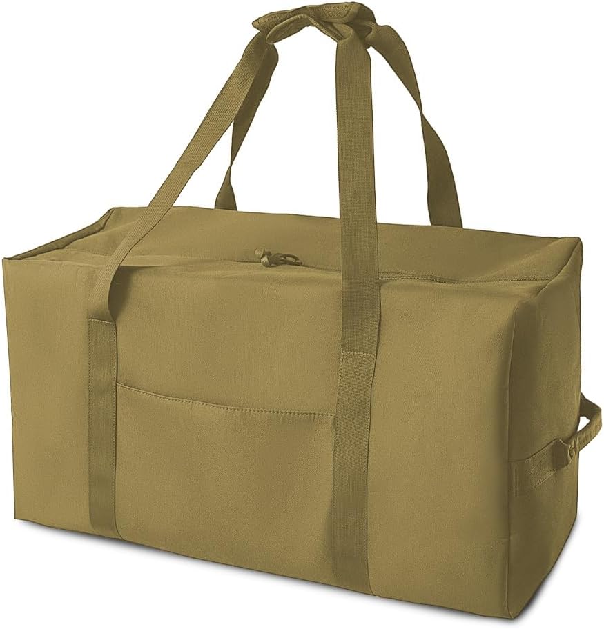 Large Military Duffle Bag Tactical Gear Load Out Bag Camping Storage Utility Tote Deployment Cargo Bag Travel Sports Equipment Duffel Luggage Bag with (Khaki, Medium 25.59"x11.81"x13.78"))
