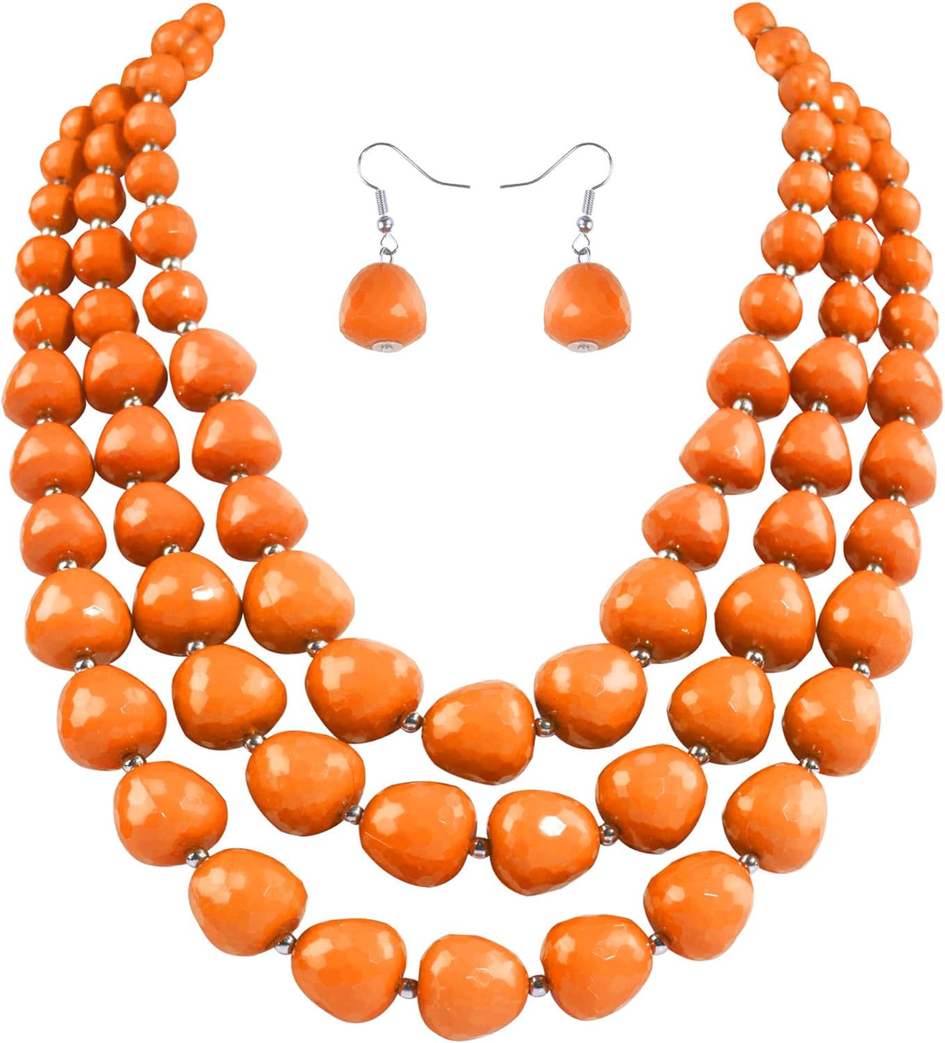 3 Layer Beaded Chunky Necklace and Earrings Set for Women, Handmade Acrylic African Boho Statement Collar Necklace Women Party Gifts (Orange)