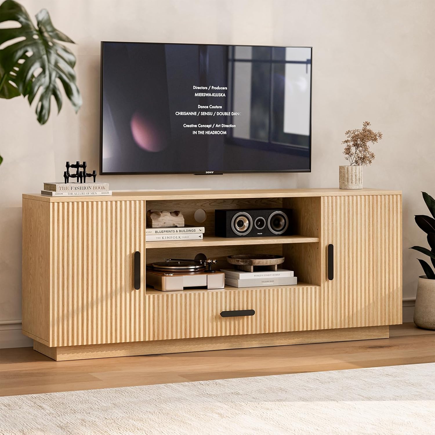 TV Stand for Living Room & Bedroom, Entertainment Center for 55/65/70 Inch TV, Modern Fluted TV Console with Storage Cabinets & Drawer, Natural